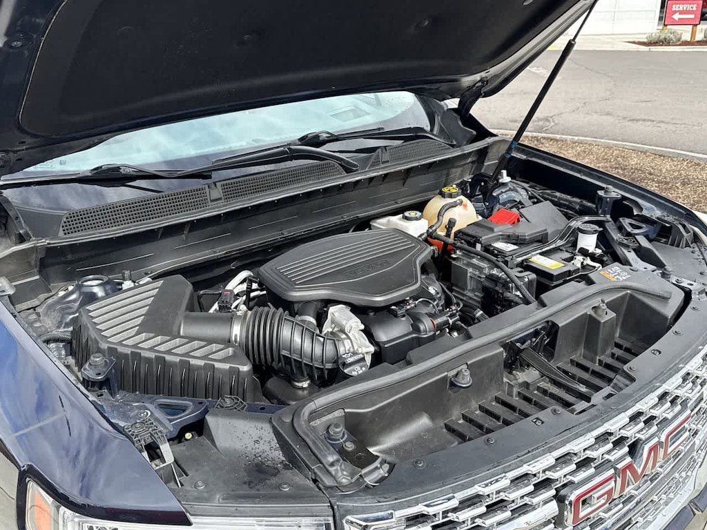 DENALI TECHNOLOGY PACKAGE includes (UV2) HD Surround Vision, (KSG) Adaptive Cruise Control, (UGN) Enhanced Automatic Emergency Braking, (DRZ) Rear Camera Mirror and (CWA) Rear Camera Mirror Washer, LPO, 20 (50.8 CM) STERLING SILVER PAINTED ALUMINUM WHEELS, SUNROOF, DUAL SKYSCAPE 2-PANEL POWER with tilt-sliding front and fixed rear with sunscreen, LPO, ADVENTURE PACKAGE includes (RIA) front and second row all-weather floor liner, LPO, (RIB) third row all-weather floor liner, LPO, (CAV) integrated cargo liner, LPO and (VQQ) roof rack cross rails, LPO, TRAILERING PACKAGE includes factory-installed hitch, 4000 lbs. towing, 7-pin wiring harness, Class III hitch, (V08) heavy-duty cooling system, (PZ8) Hitch Guidance with Hitch View and (CTT) Hitch Guidance Also includes (KW7) 170-amp alternator.), LPO, CARGO PACKAGE includes (VRS) retractable cargo shade, LPO and (W2D) vertical cargo net, LPO, LPO, KEYLESS ENTRY KEYPAD with vertical design, 5-digit programmable keypad located on driver-side B-pillar, AUDIO SYSTEM, 8 DIAGONAL GMC INFOTAINMENT SYSTEM WITH NAVIGATION includes multi-touch display, AM/FM/SiriusXM stereo, Bluetooth® streaming audio for music and most phones, Android Auto® and Apple CarPlay® capability for compatible phones, advanced voice recognition, in-vehicle apps, personalized profiles for infotainment and vehicle settings (STD), ENGINE, 3.6L V6, SIDI, DOHC with Variable Valve Timing (VVT) (310 hp [231.1 kW] @ 6600 rpm, 271 lb-ft of torque [365.9 N-m]) @ 5000 rpm (STD), TRANSMISSION, 9-SPEED AUTOMATIC, ELECTRONICALLY-CONTROLLED with 3.6L V6 engine (STD). Remote Trunk Release, Privacy Glass, Child Safety Locks, Steering Wheel Controls, Heated Mirrors.